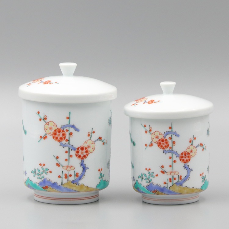 組湯呑 外蓋 染錦松竹梅地文