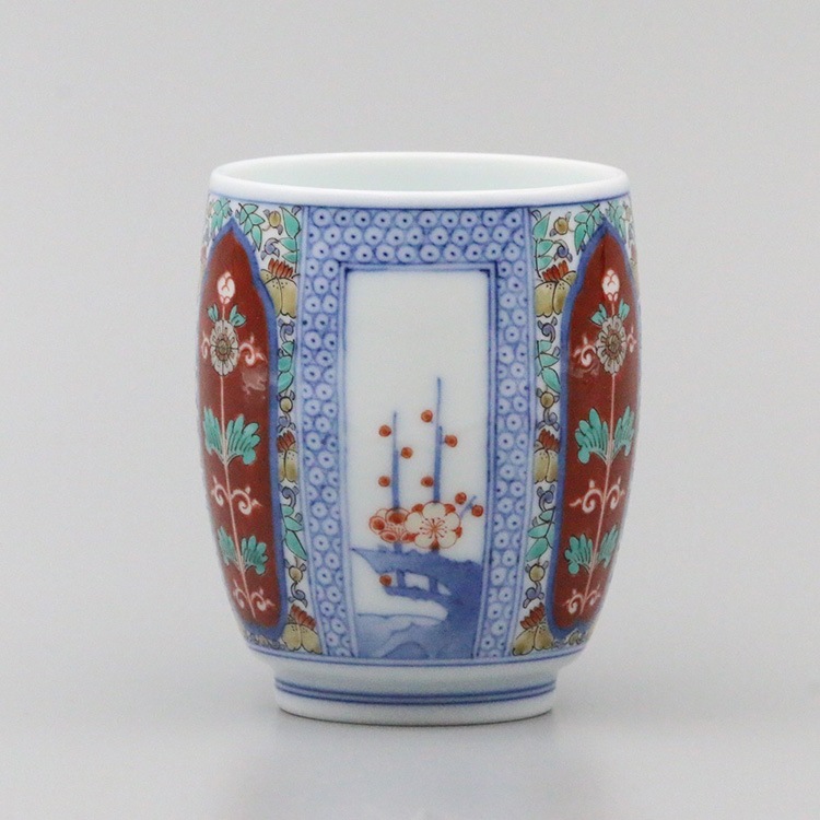湯呑 蓋なし大 染錦 山水地文