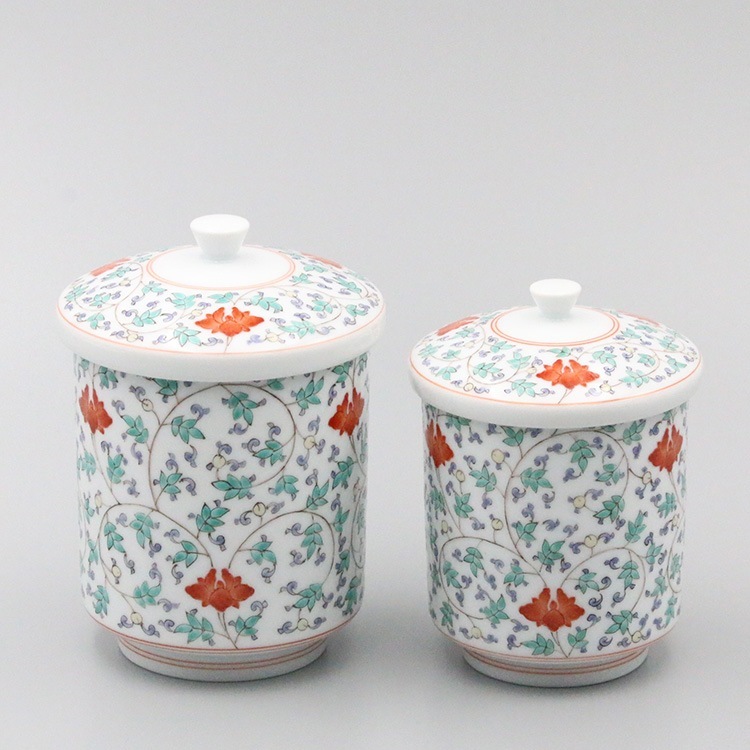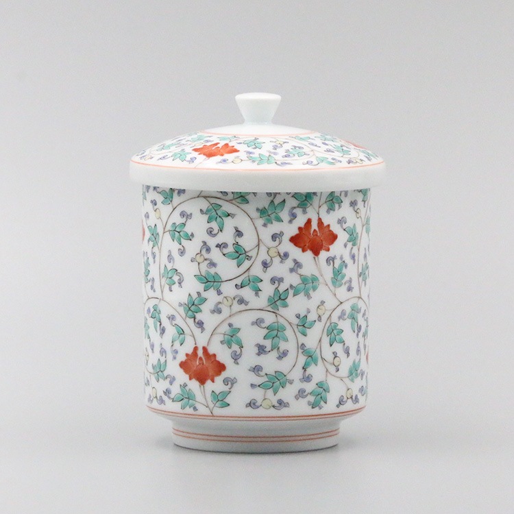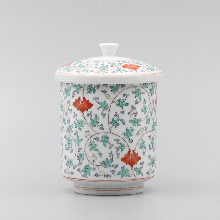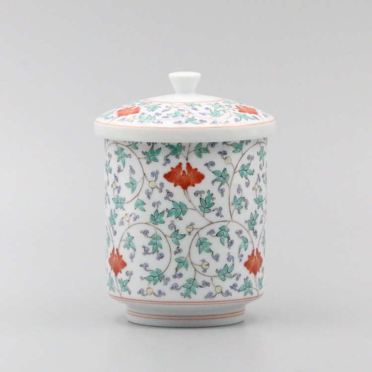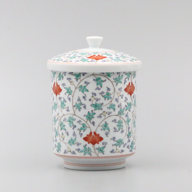 組湯呑 外蓋 染錦松竹梅地文