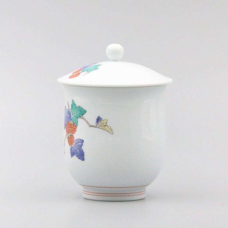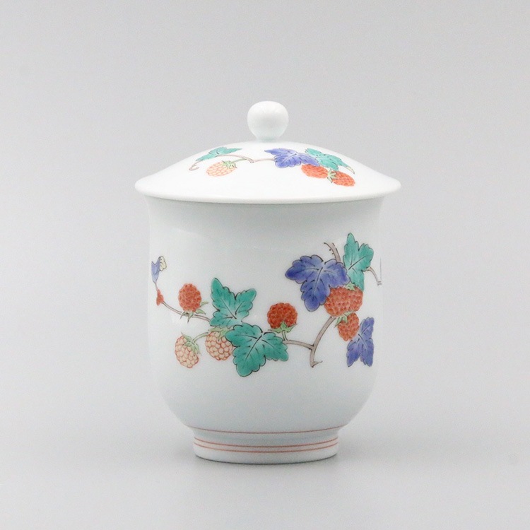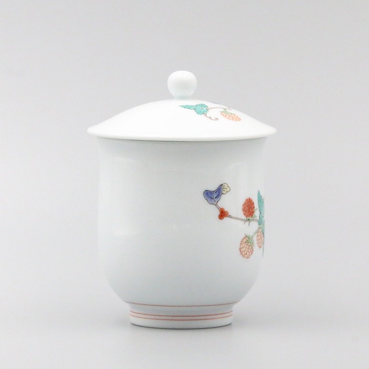 組湯呑 外蓋 染錦柿文