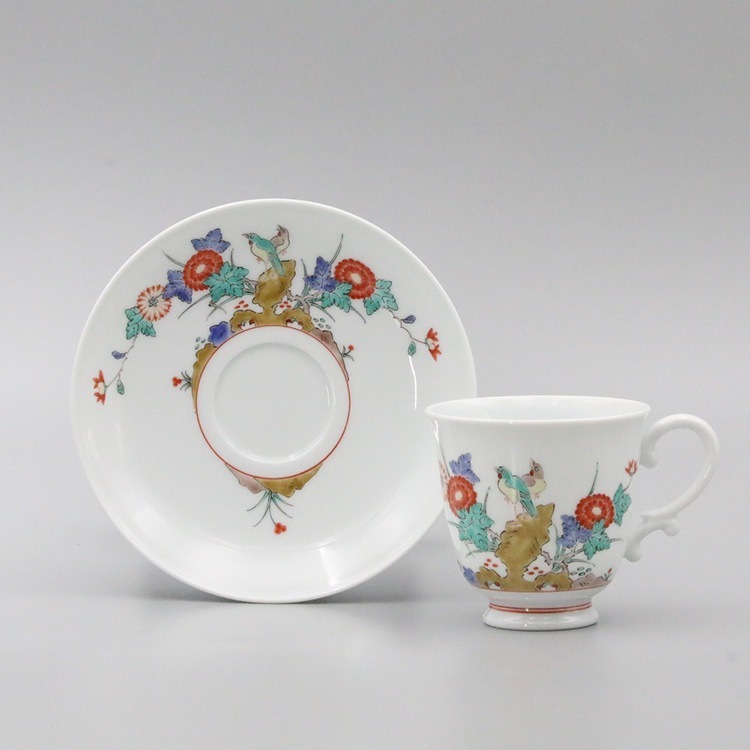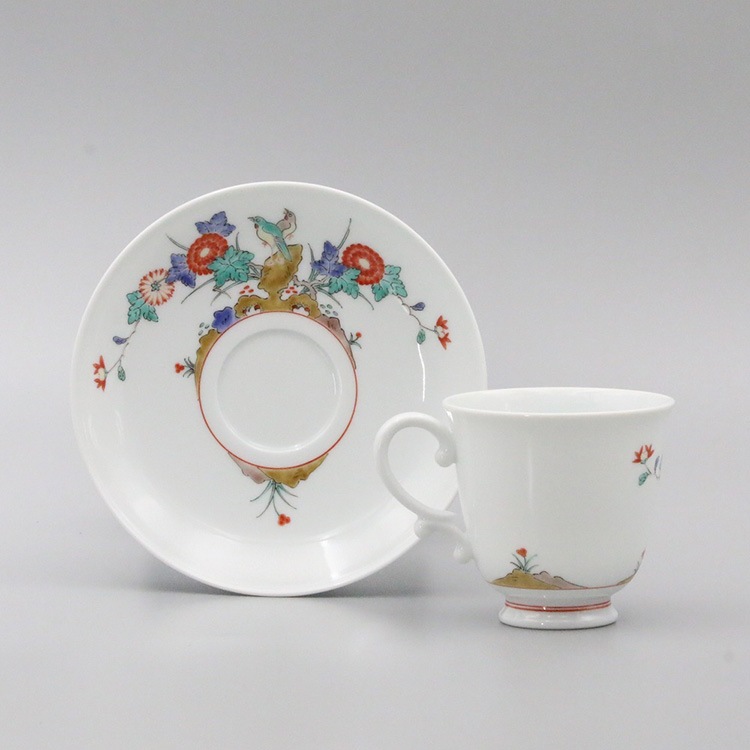 珈琲碗 縁反 菊鳥文