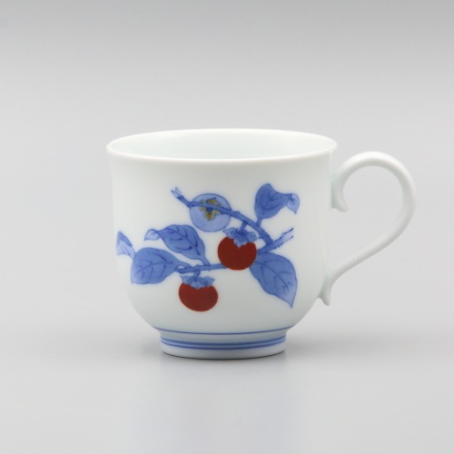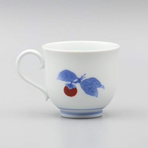 珈琲碗 丸形 染錦柿文